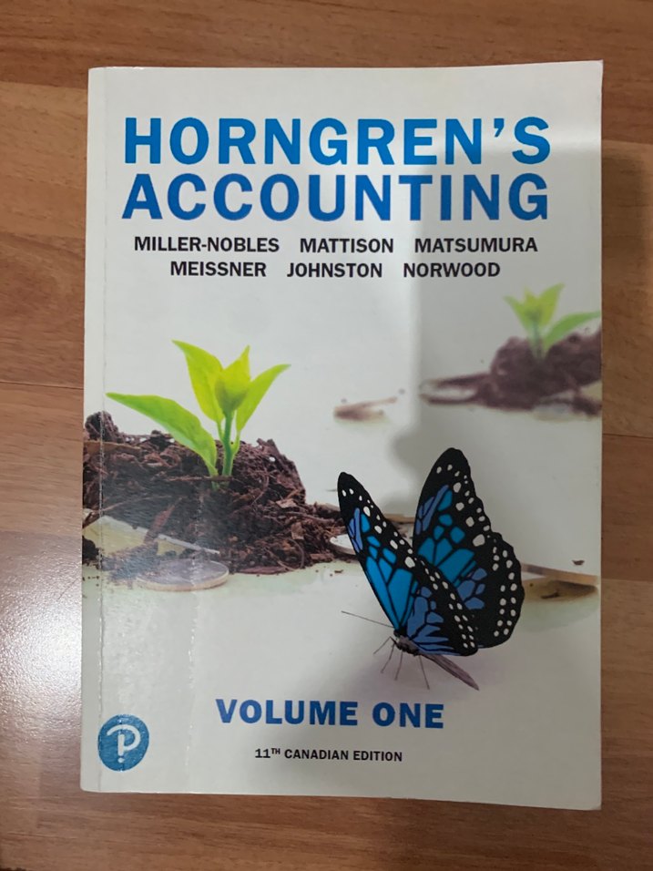 Horngren's Accounting Cilt 1, 11. Kanada Baskısı, temel muhasebe ilkelerini içerir. Yazarlar Miller-Nobles, Mattison, Matsumura, Meissner, Johnston ve Norwood'dur.