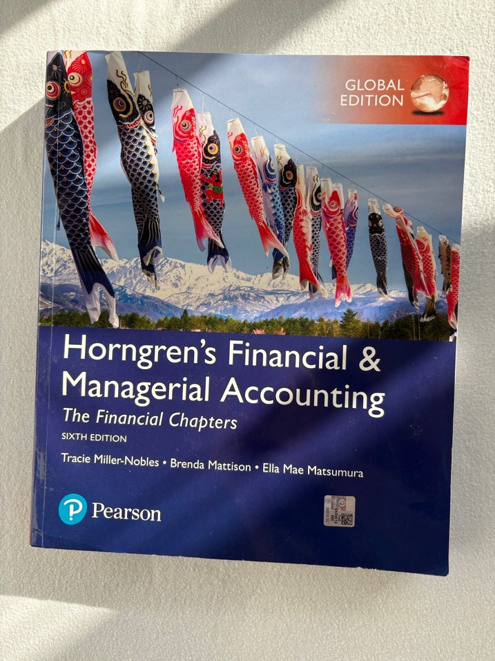 Horngren's Financial & Managerial Accounting kitapları altıncı baskısı, financial ve menagerial bölümleri içeren Pearson Global Edition. Yazarlar Tracie Miller-Nobles, Brenda Mattison ve Ella Mae Matsumura.