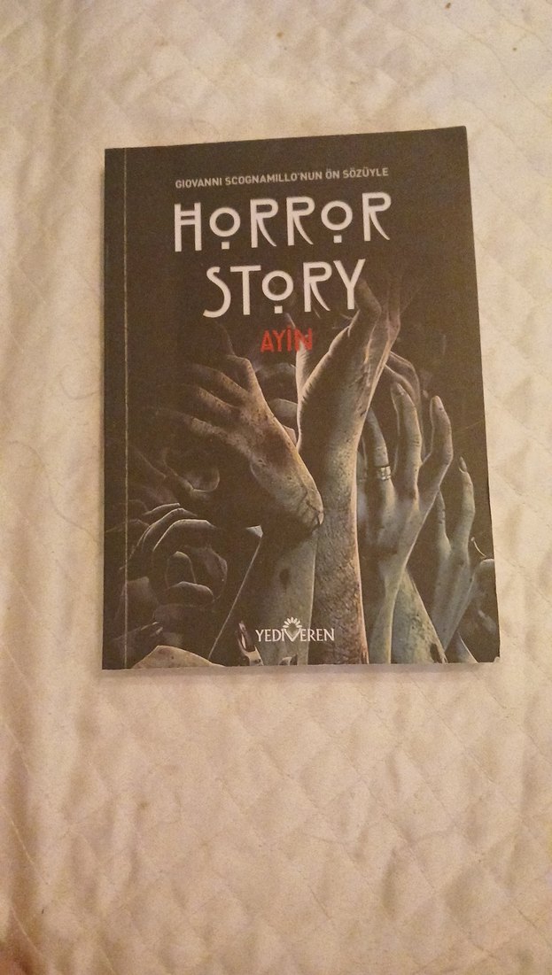Horror Story - Ayin, Yediveren yayınevinden çıkan korku temalı bir roman. Kapağında karanlık ve ürkütücü eller yer alıyor.