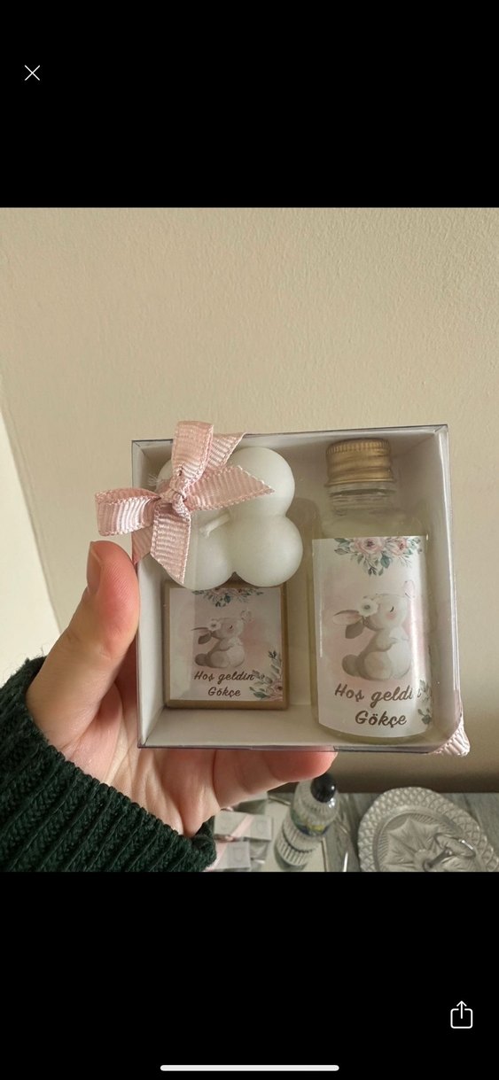 ÖZEL İLAN 20 adet Hoş geldin mesajlı kart, ayıcık desenli küçük kolonya şişesi ve şekilli sabun içeren bebek karşılama seti.