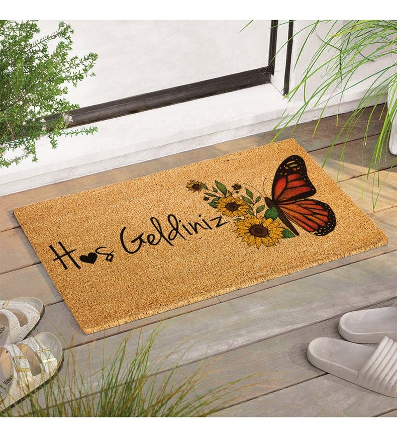 Hoş geldiniz yazılı kapı önü paspası