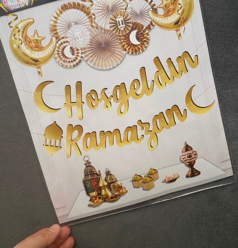 Altın renkli "Hoşgeldin Ramazan" yazısı sıfır urun