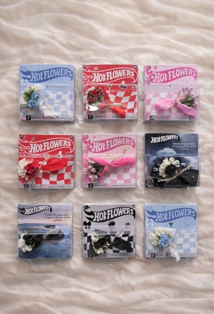 Pastel renklerde, kareli desenli çiçek aksesuarları içeren hediye seti, yumuşak ve dekoratif bir dokunuş sağlar. adet fiyatıdır