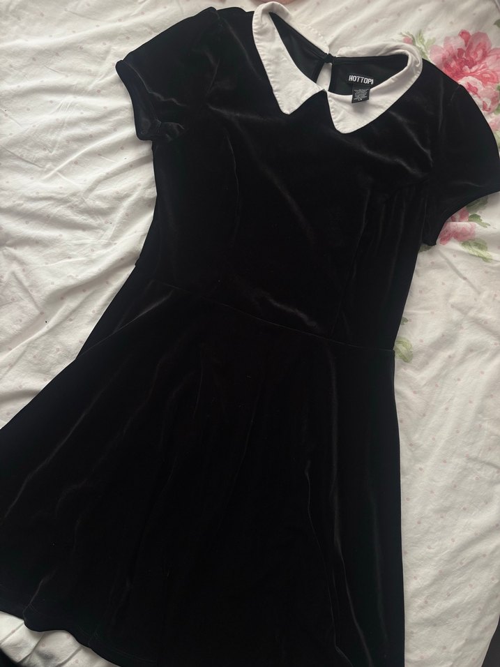 Hot Topic Siyah Yakalı Kadife Kısa Kollu Elbise