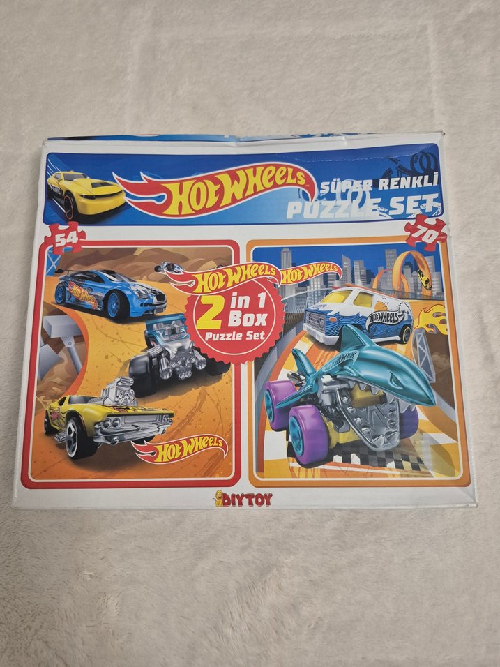 Hot Wheels markalı, 2'si 1 arada kutuda renkli çocuk puzzle seti. Fotoğraflarda görüldüğü gibidir. İadeyle uğraşacak vaktim olmadığı için iade kabul etmiyorum.