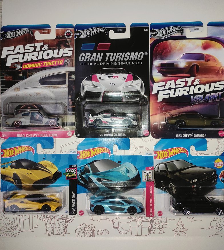 Fast & Furious ve Gran Turismo temalı, Chevy Fleetline ve Toyota GT Supra gibi detaylı mini oyuncak arabalar içeren canlı renkli Hot Wheels seti.