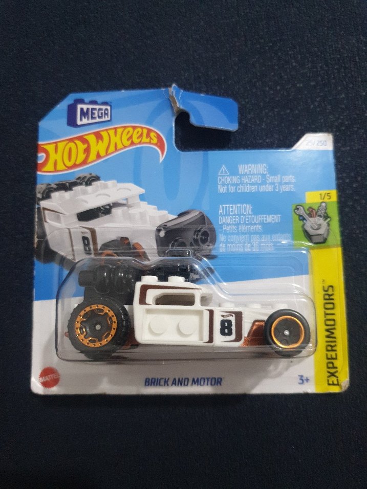 Hot Wheels oyuncak araba, beyaz gövde ve koyu detaylara sahip. Büyük tekerlekleriyle 3 yaş ve üzeri için uygundur.