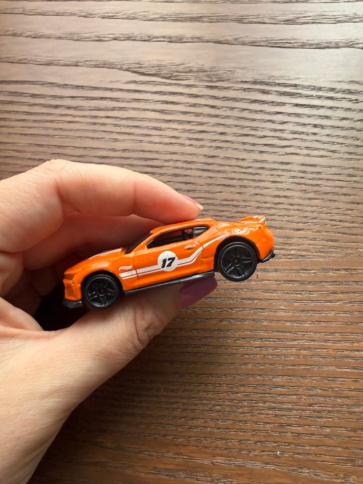Hot Wheels marka metal oyuncak araba. Model: 2017 Camaro ZL1. Kullanılmıştır, belirgin kullanım izleri vardır. Boyasında çizikler ve boya atıkları mevcuttur (fotoğraflarda görünüyor). Camları sağlam, tekerlekleri çalışır durumda