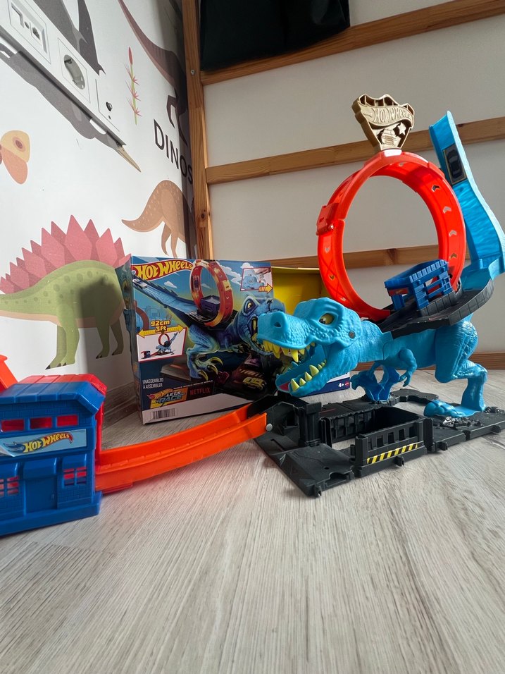 Hot Wheels T-Rex oyun pisti / loop seti satılıktır. Çok az kullanılmıştır, çok temiz ve sorunsuzdur. Tüm parçaları eksiksizdir, çalışır durumdadır. Kutu mevcuttur (fotoğraflarda görüldüğü gibi). ✔️ Kırık / çatlak yok ✔️ Dinazor figürü sağlam ✔️ 4 yaş ve üzeri çocuklar için uygundur