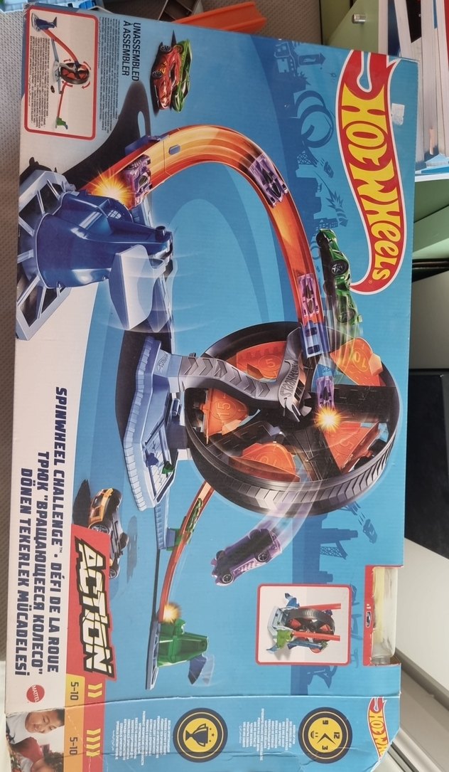 Hot Wheels çok renkli parkur ve araçlarla dönen tekerlek mücadelesi yarış seti. Eğlenceli aksiyon özellikleri içerir.