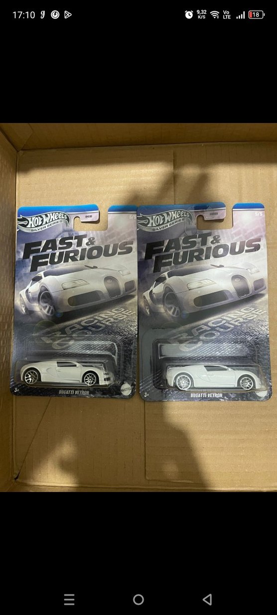 Hot Wheels Fast & Furious serisinden beyaz ve gri renkli Bugatti Veyron oyuncak araba, detaylı tasarımıyla dikkat çekiyor. ️