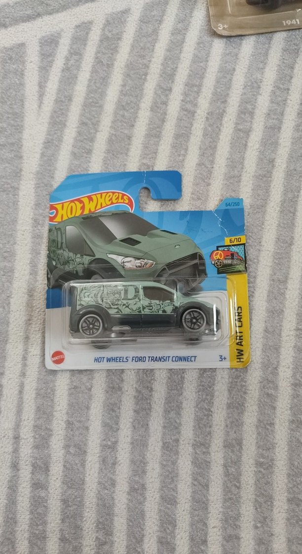 Hot Wheels Ford Transit Connect oyuncak araba, gri renkli ve detaylı tasarıma sahip. Koleksiyon ve oyun için uygun kompakt model.