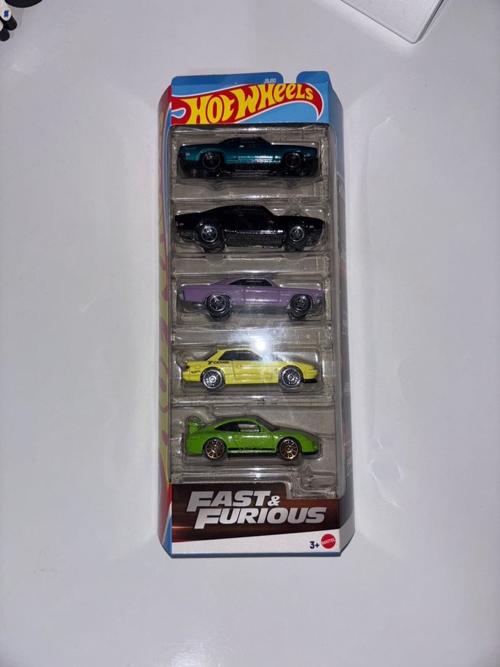 Hot Wheels Hızlı ve Öfkeli temalı, koyu ve canlı renklerde 5 adet çok renkli oyuncak araba seti. Farklı modeller ve detaylı tasarımlar içerir
