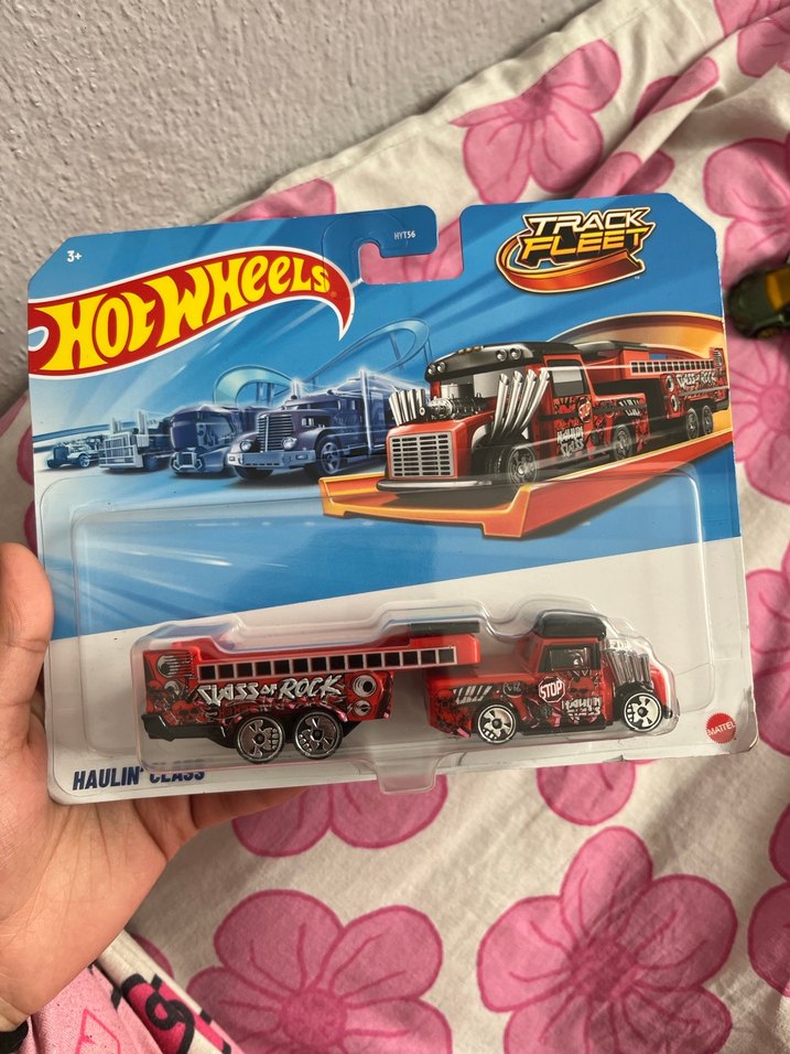 Koyu kırmızı renkte, 'HAULIN' ve 'SVASSMROCK' yazılı detaylı grafiklere sahip Hot Wheels oyuncak kamyonet. Canlı ve dikkat çekici tasarımıyla haulin sınıfı araç.