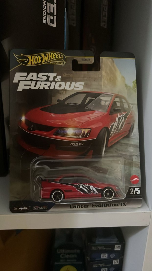 Hot Wheels markalı, Kırmızı renkli Lancer Evolution IX oyuncak araba, Fast & Furious serisinden detaylı tasarıma sahip.
