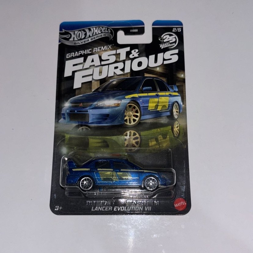 Bu koyu mavi Hot Wheels oyuncak araba, Fast & Furious Graphic Remix serisinden detaylı Lancer Evolution VII modelidir. Canlı grafiklere ve gerçekçi tasarıma sahiptir.