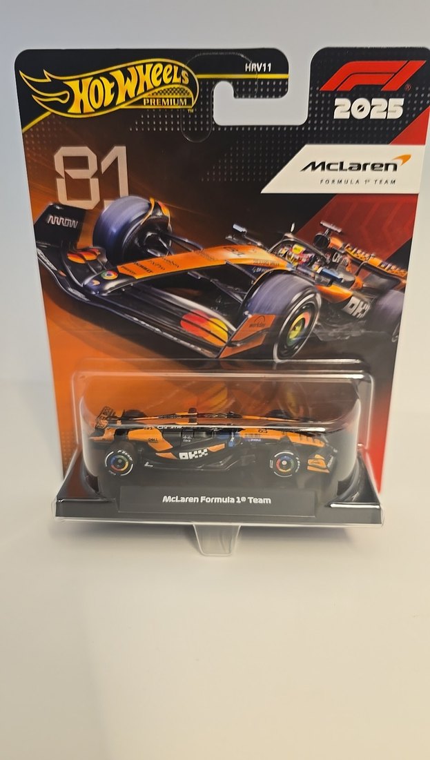 Bu Hot Wheels oyuncak araba, 2025 McLaren Formula 1 Takımını temsil eder. 81 numara ve detaylı işaretlerle koyu siyah renktedir. ️