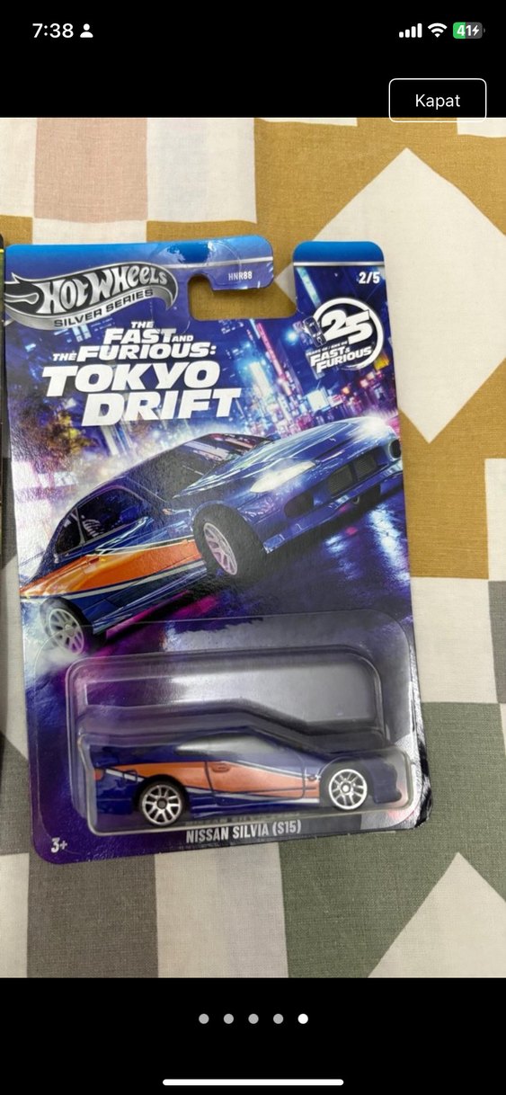Koyu mor Hot Wheels oyuncak araba, The Fast and the Furious: Tokyo Drift serisinden Nissan Silvia (S15) modelidir. Detaylı desenlere ve şık tasarıma sahiptir.