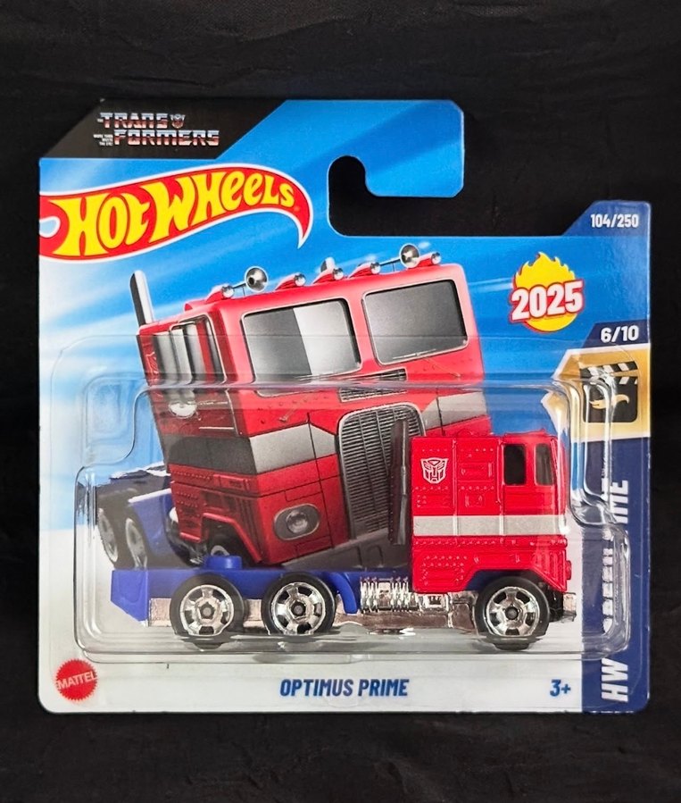 %100 kondisyonlu kartonet. Optimus Prime temalı, renkli kırmızı Hot Wheels oyuncak araba. 3 yaş ve üzeri çocuklar için uygundur.
