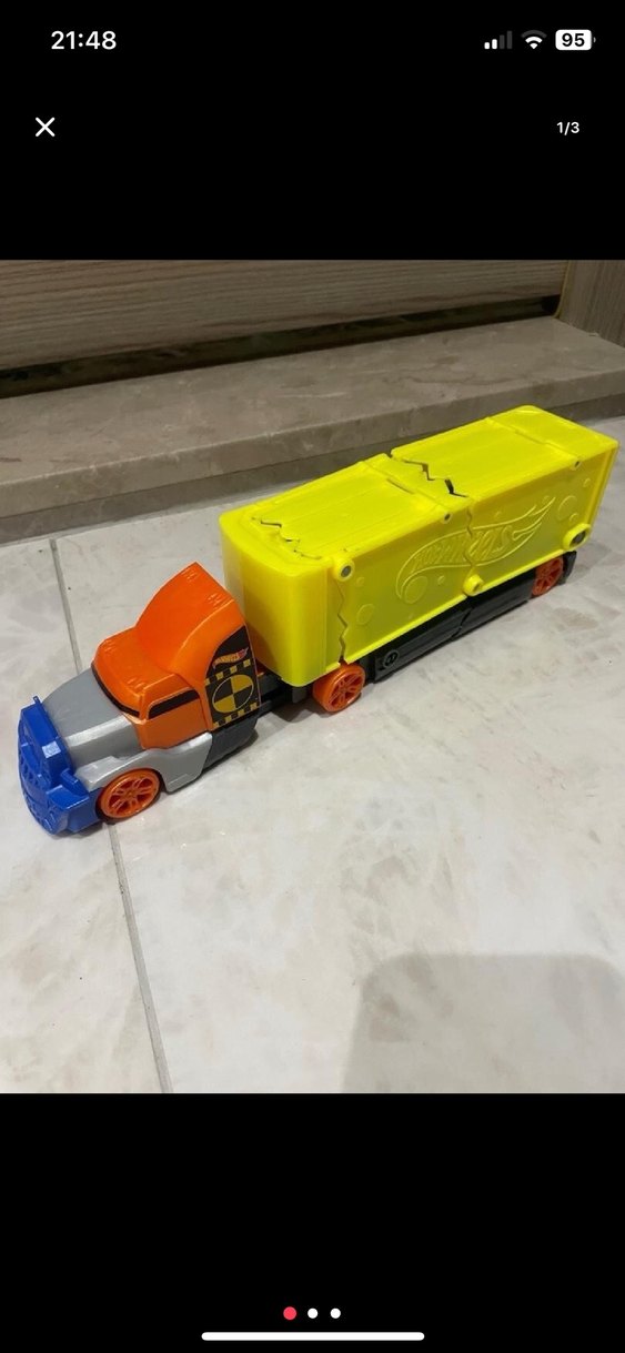 Canlı sarı rengi ve turuncu kabiniyle detaylı tekerleklere sahip renkli oyuncak tır. Hayal gücünü destekler.