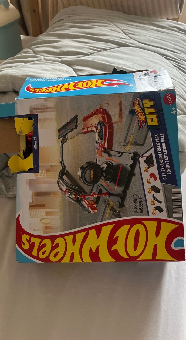 Hot Wheels şehir yarışı oyun seti, ile çeşitli pist parçaları içerir.