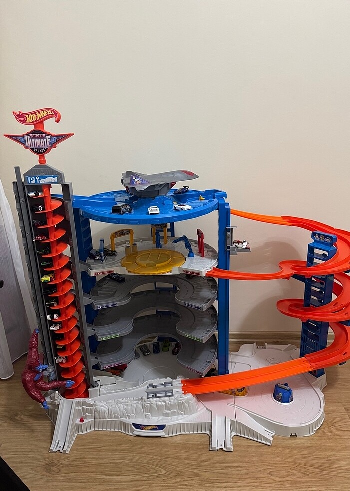 Hot Wheels'in bugüne kadarki en büyük garajı. Çok az kullanıldı tüm parçaları tam ve eksiksiz. Hatta kendimiz birkaç ekstra parça da aldık uçarına eklenebiliyor. Devasa boyutta çok güzel hem sergi hem oynamak amaçlı kullanışlı. Kitapçığı bile duruyor sökülüp takılabilir. Etiketlerinde bile hiç deformasyon yok. Güneşe maruz kalmadı renk solması hiç yok. Alıcısına hayırlı olsun. Biz taşınacağımız için satıyoruz. Fiyatı uygun tuttum sıfır fiyatını son fotoğrafta görebilirsiniz. Sıfırını almaya gerek yok ürünün geçekten sıfır gibi. Gelip görüp alabilirsiniz. Resimlerdeki arabalar satılık değildir.