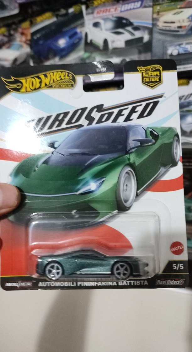 Hot Wheels oyuncak araba, koyu yeşil Pininfarina Battista modeli ve Real Riders tekerleklerle detaylı tasarıma sahip. Seride 5/5 puan almıştır.