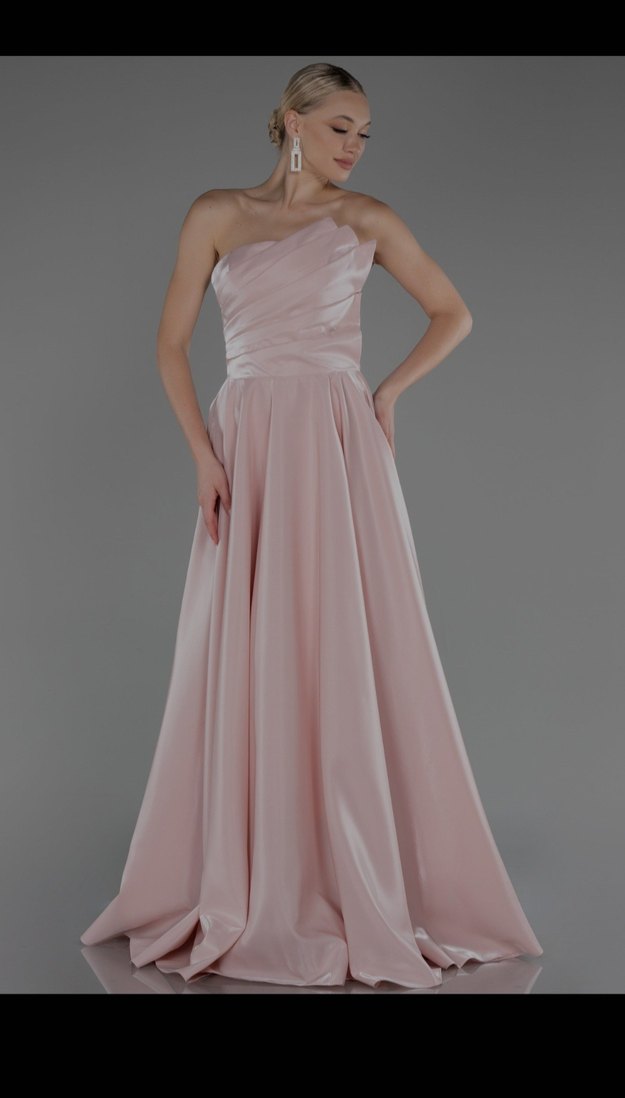 Pudra renkli, straplez yakalı ve drapeli uzun abiye elbise. Modern klasik tarzda, düzenli kesim ve şık duruşuyla düğünlere uygundur.Sadece 3 saat giyildi kiri temizleme yapilmistir .9 bine alinmistir modelde askı yoktur biz sonradan yaptırdık