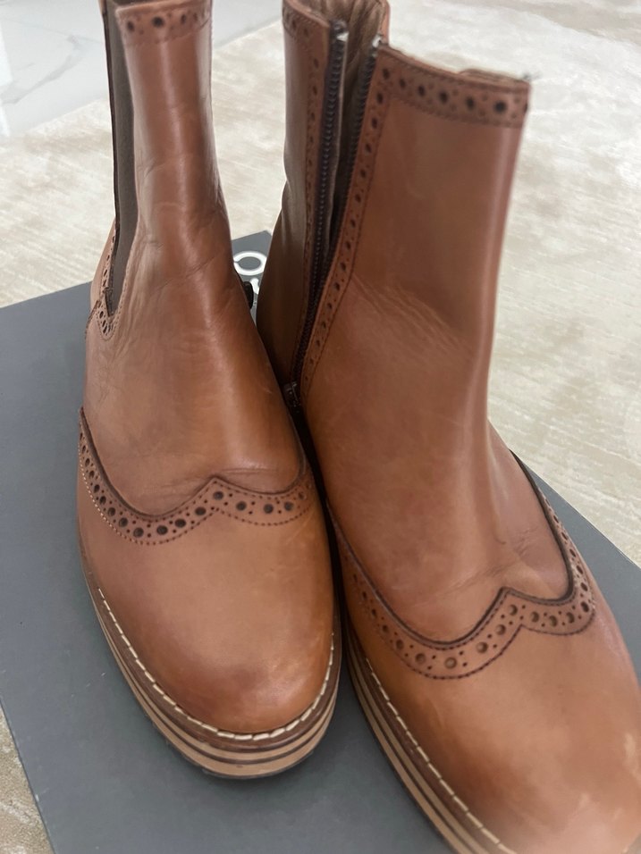 Defosu yok. Kahverengi deri kadın bot,yanlardan fermuarlı. Klasik,günlük kullanıma uygun.