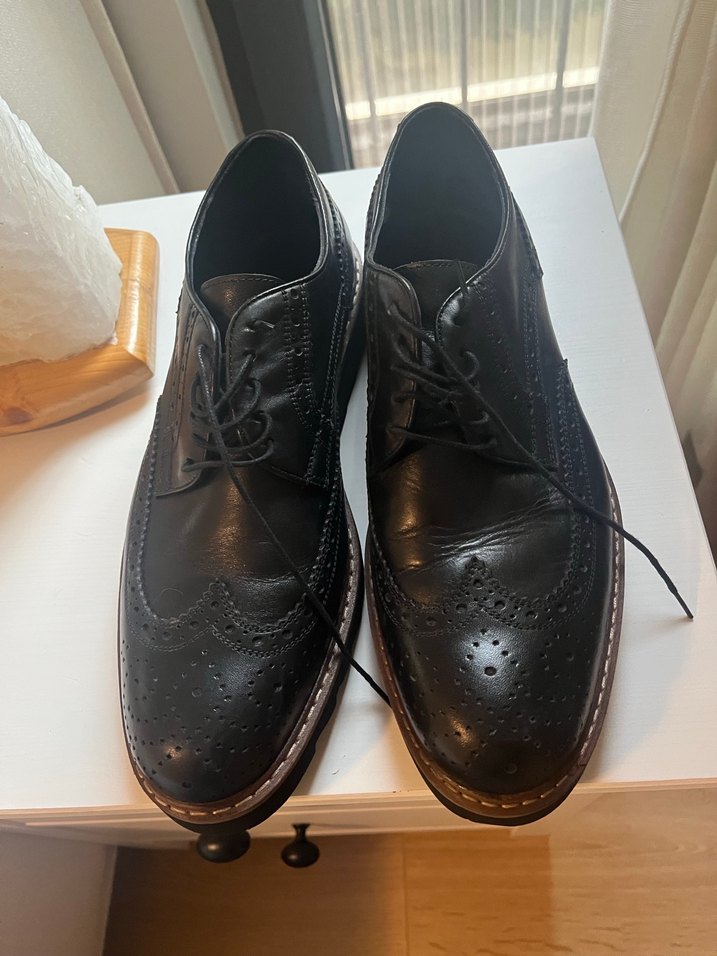 Ofis için uygun, bağcıklı siyah deri erkek klasik ayakkabılar. Gotik klasik şıklık ve brogue detaylara sahip. 1 kere giyilmiştir bir sorunu yoktur
