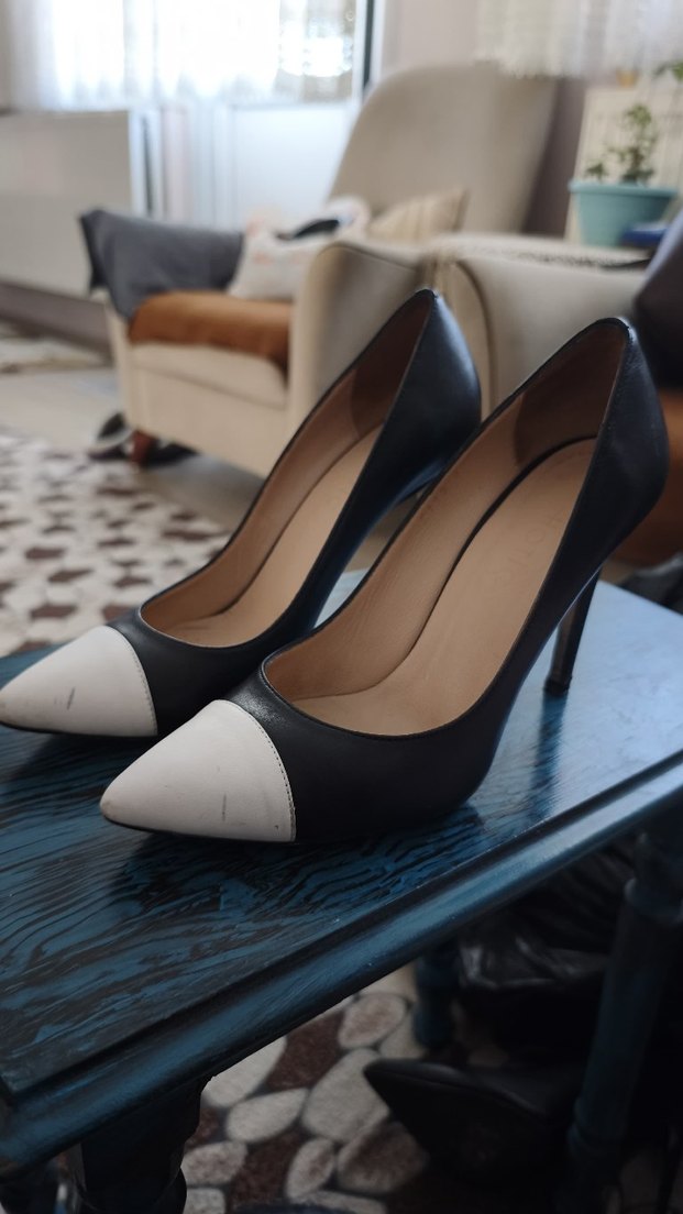 HOTİC KADIN SIYAH BEYAZ TOPUKLU AYAKKABI