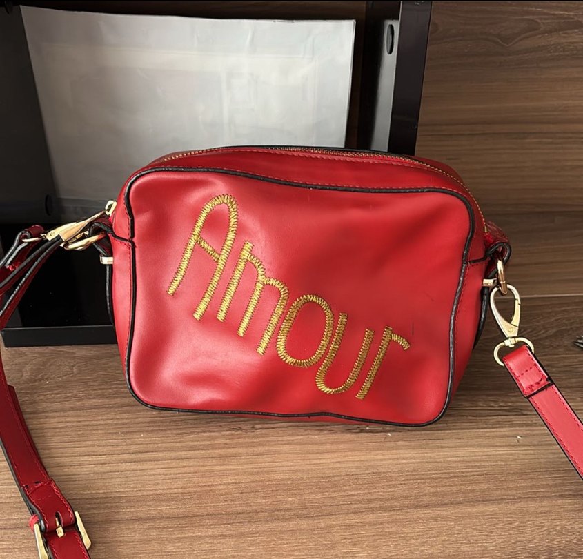 Nakış detaylı, fermuarlı kırmızı deri kadın çantası, cesur ve bohem Paris havasıyla romantik akşamlar için uygun. ❤️ Formu çok iyi, kullanışlı