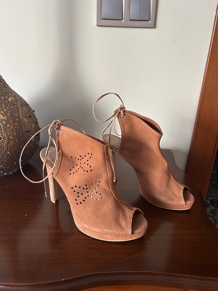 Hotiç markanın %100 süet platform ve stiletto ayakkabısı. Aşırı şık ve çok uzun gösteriyor. 1 kez giyildi ve yepyeni duruyor. Yüksekliği 11 cm’dir. 36 numaradır. Taba renktir.