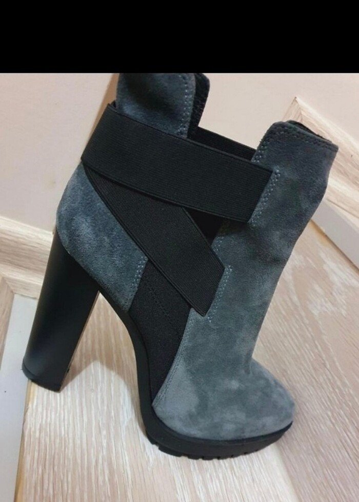 Hiç giyilmedi 2-2.5 cm platformu olmak üzere toplamda 11 12 cm civarı topuğu var. Fermuarsız.