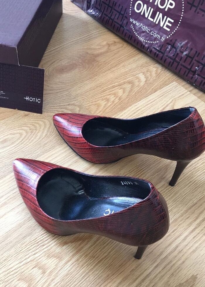 Hotiç Marka, 36 numara, Bordo rengi DERİ stiletto. Topuk boyu 8 cm’dir. 2 kere çok temiz kullanıldı yeniden farksız fotoğraflarda görüldüğü gibidir ne bir eksik ne bir fazla. Kalıbı tam, tabanı yumuşaktır gönül rahatlığıyla tercih edebilirsiniz… ORİJİNALDİR. Kullanmadığım için satışa çıkardım iade kabul etmiyorum alacak olan kişiye hayırlı olsun. Sadece Ayakkabı fiyatıdır.