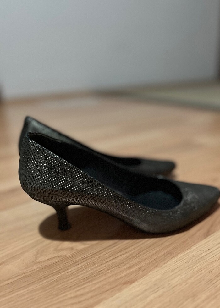 Hotiç marka stiletto, kendinden simli gibi görünüyor, kısa topuklu