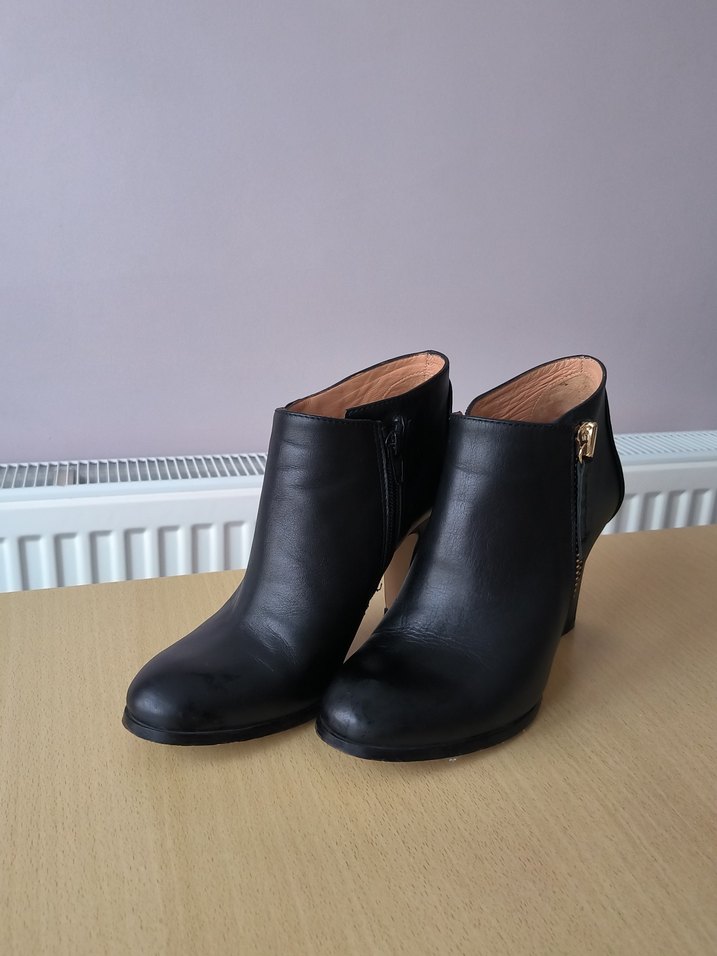 37 numaradır. Ürün temizdir. Siyah renkte, tokalı ve blok topuklu kadın ayakkabısıdır.