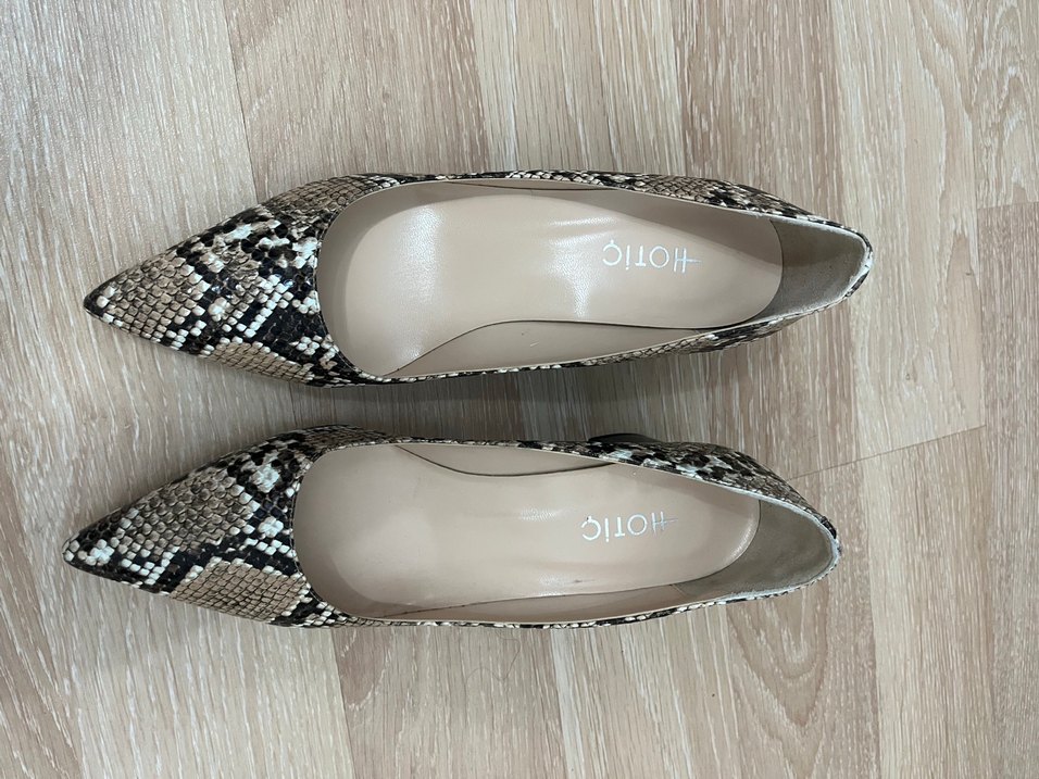 Hotiç Yılan Desenli Bej Topuklu Kadın Ayakkabı