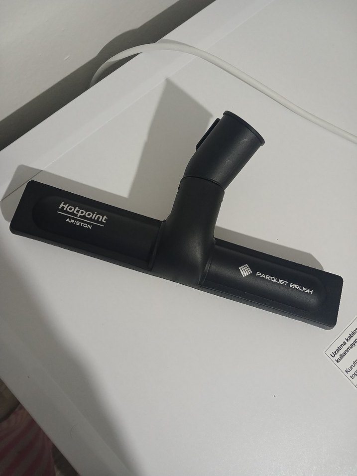 Hotpoint markasına ait siyah parke fırçası, sert zeminlerin temizliği için uygundur.