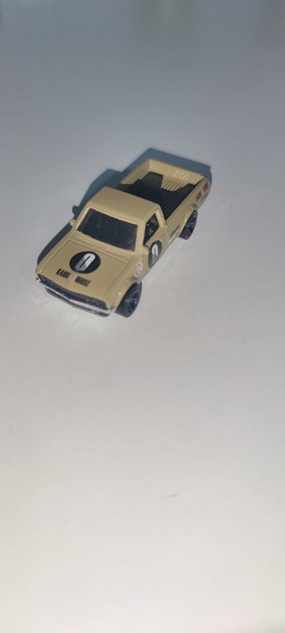 Bej renkte küçük oyuncak araba, detaylı çıkartmalar ve siyah tekerleklerle tasarlanmıştır.Fotolarda Göründüğü gibi tertemizdir.
