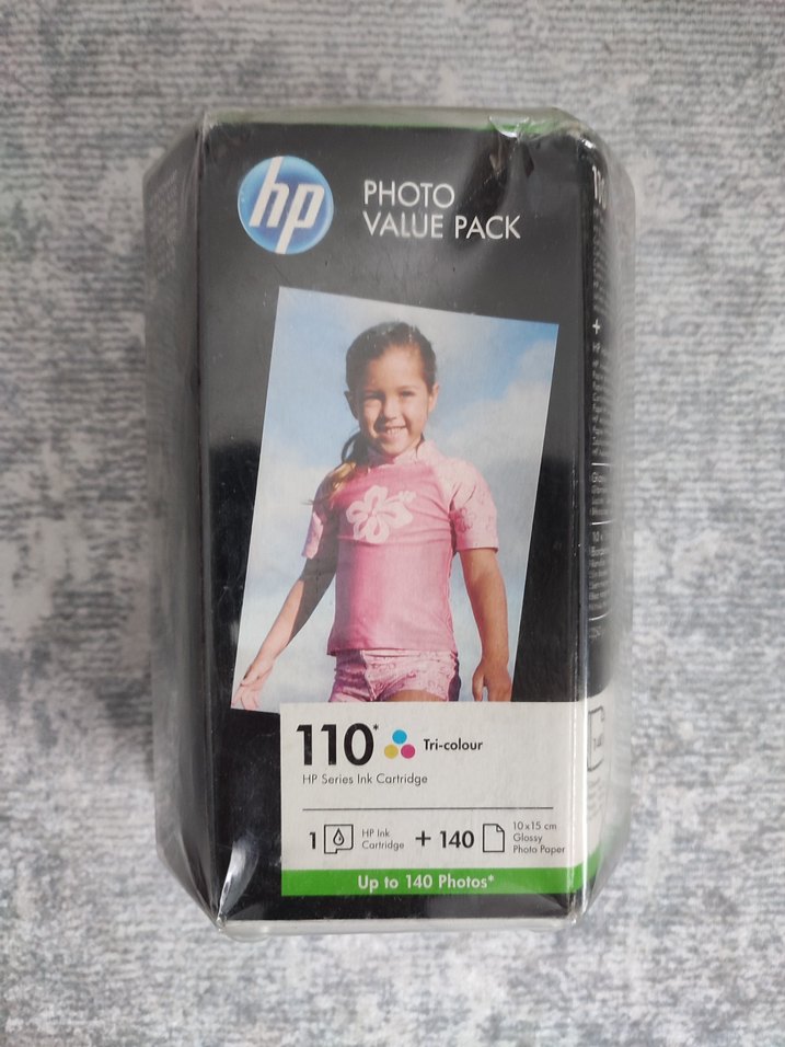 HP 110 üç renkli kartuş ve 140 parlak fotoğraf kağıdı içeren paket. Açık deve tüyü tonlarında canlı renklerle 140 fotoğraf basılabilir. ambalajı açılmamış ürün marka model uyumluluğunu kontrol ✔edip alınız