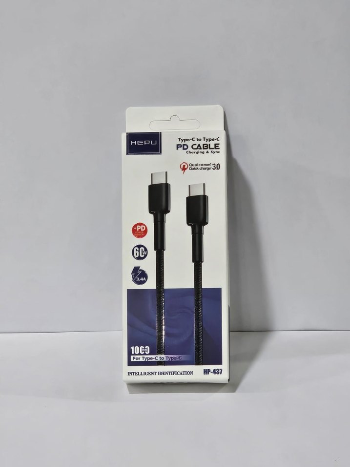 HP-437 siyah Type-C to Type-C şarj kablosu, 30W hızlı şarj ve akıllı tanımlama özelliklerine sahiptir. Uzunluğu 1 metredir. ⚡