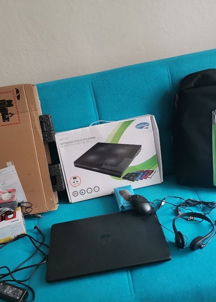 Satın alalı 1 sene olmadı ve 2 3 defa kullanılmıştır. Görselde gördüğünüz herşey dahildir fiyata. Laptop Kulaklık Hoparlör Soğutucu Mouse Laptop çantası 2 yıl garanti belgesi