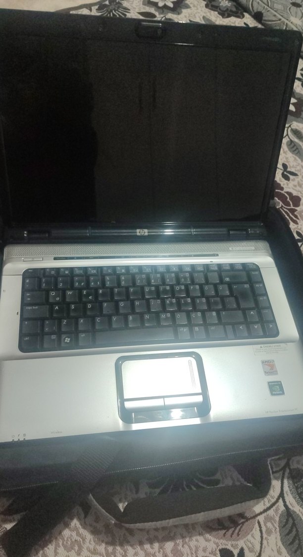 siyah renkli HP dizüstü bilgisayar, tam klavye ve dokunmatik yüzeye sahiptir. yan ve tuş ışıkları yanıyor ama açılmıyor ekran.Sıkıntısı ne bilmiyorum parça olarak satılıktır.