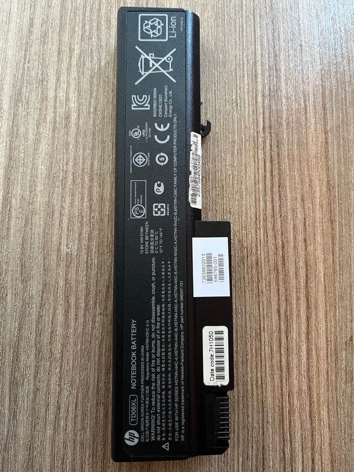 HP marka siyah dizüstü bilgisayar bataryası, lityum-iyon yapıda olup güvenilir güç sağlar.