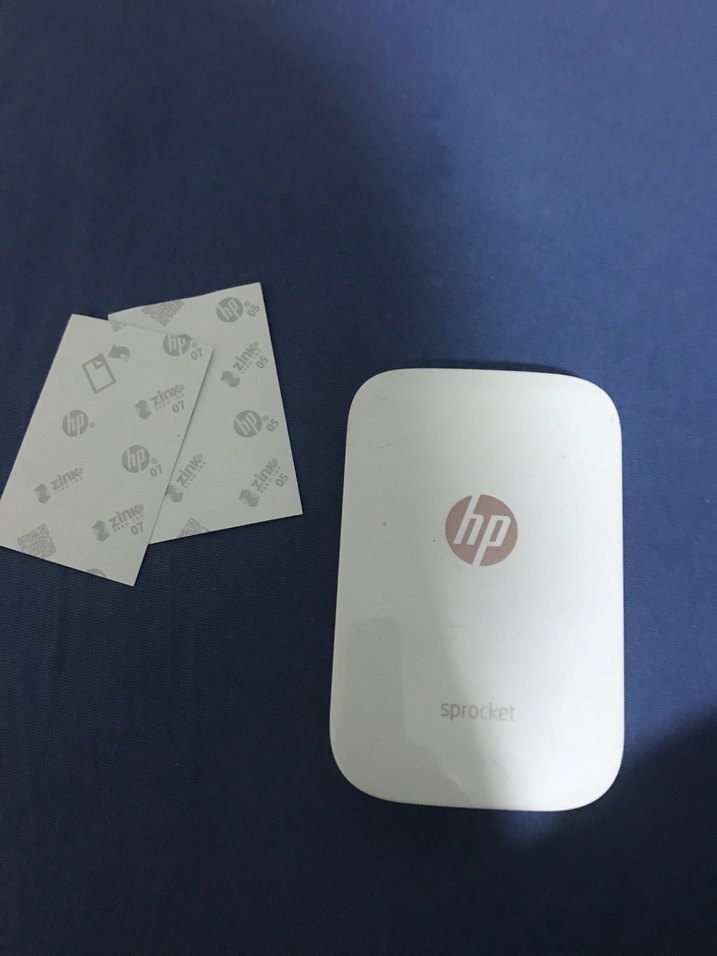 Beyaz renkli, kompakt ve hafif HP Sprocket taşınabilir yazıcı. Yanında 2 fotoğraf kağıdı sayfaları ile birlikte gelecek kağıt boyutu 8 cm en 5 cm dir ürünü hiç almıştım fakat hiç kullanmadım ürün sıfırdır sadece şarz aleti yok