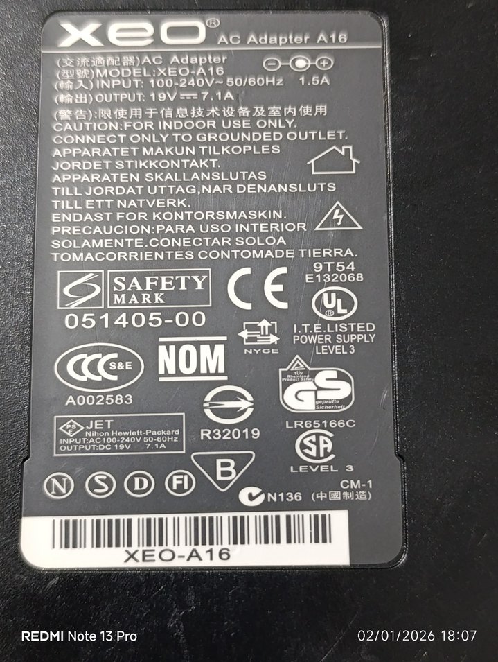 HP XEO A16 Siyah AC Adaptör 19V 7.1A