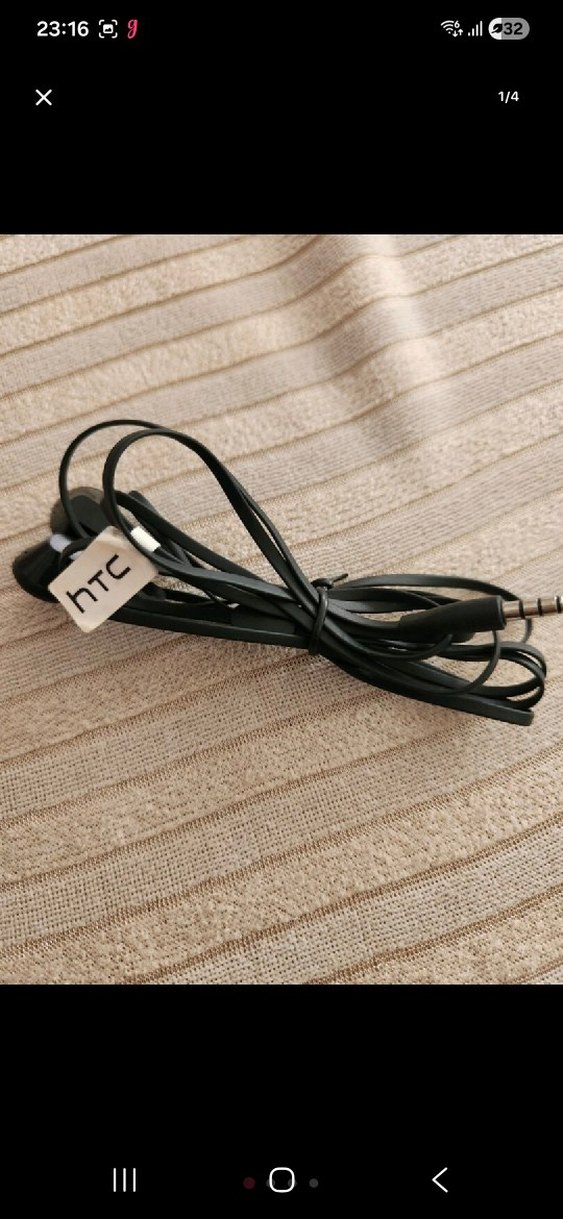 3.5 mm jak girişi ve düz kabloya sahip siyah HTC kulak içi kulaklık. Çeşitli cihazlarla uyumludur.