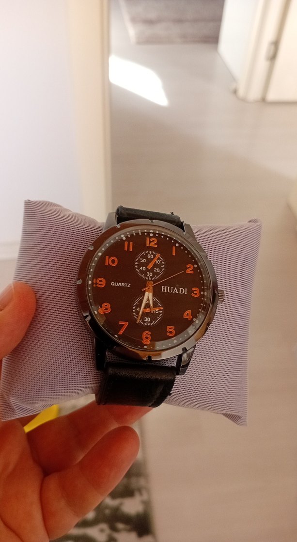HUADI markalı, koyu kahverengi kadranlı ve deri kayışlı erkek biker tarzı quartz saat.