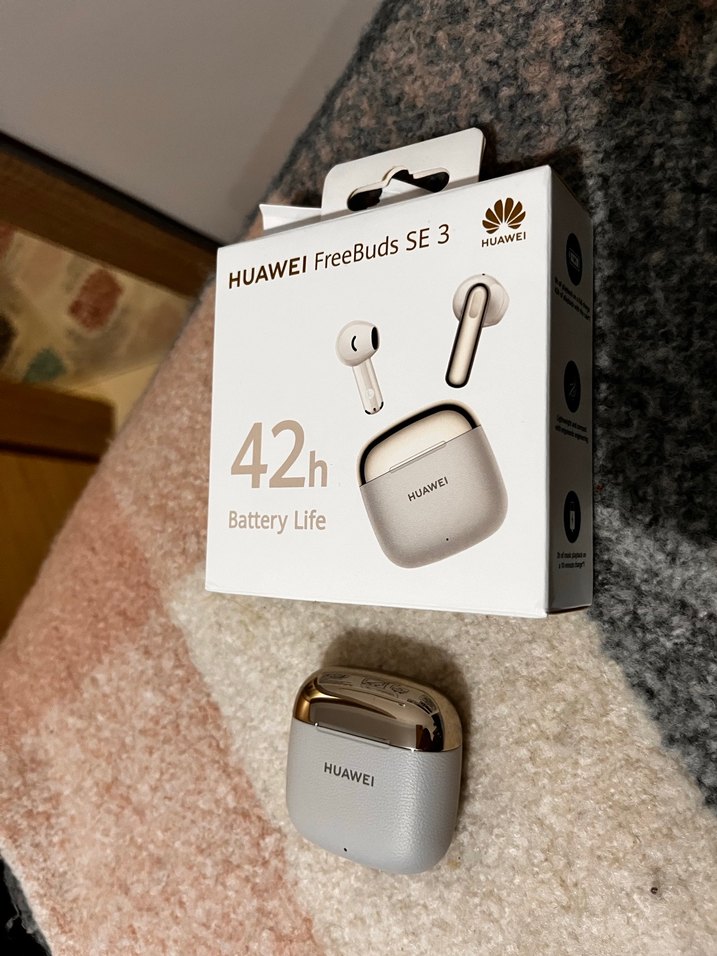 Huawei FreeBuds SE 3 gri renkli kablosuz kulaklık, 42 saate kadar pil ömrü ve kompakt şarj kutusuna sahiptir. Rahat kullanım ve kaliteli ses sunar.